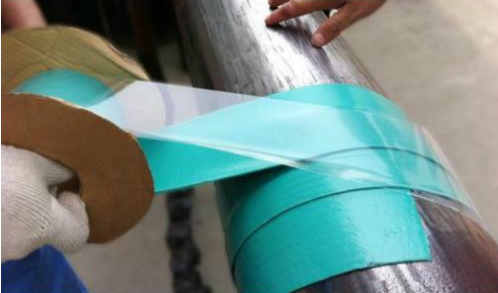 粘彈體防腐膠帶的基材由回彈性薄膜或超塑性薄膜組成。膠帶可輕松被拉長至原長度的3倍,可以被塑造成任意形狀。因此,適合于埋地管道補口防腐和修復,以及彎頭、彎管、三通和絕緣法蘭等異形管件的防腐。